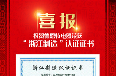 正值德恩特電器燃氣新品正在上市之際,又獲重磅利好,德恩特電器在浙江省眾多優秀企業的競爭中脫穎而出,榮獲“浙江制造”認證證書,被授權使用“品”字標志,正式躋身于“品”字標浙江制造高端品牌大家庭。