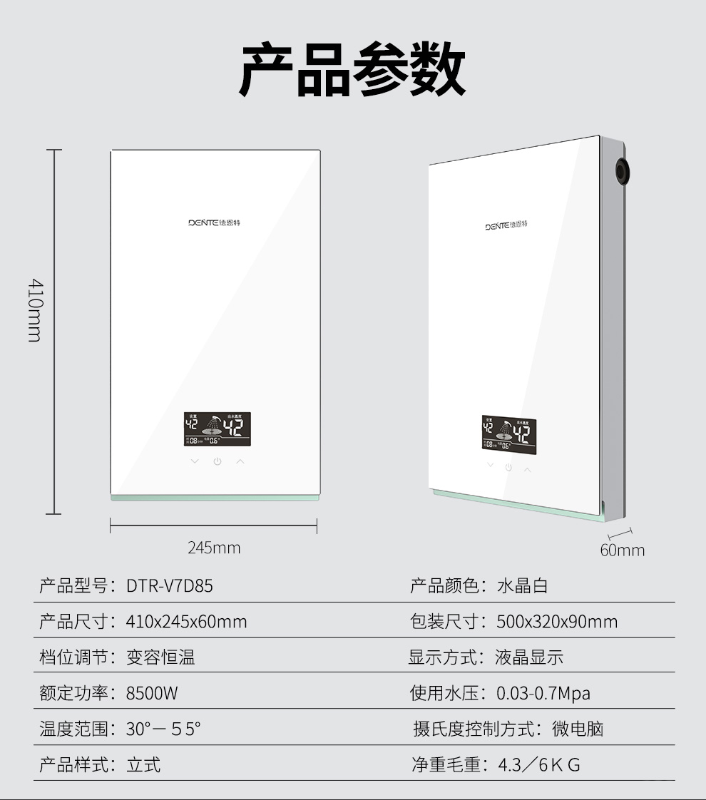 ——德恩特DTR-V7D85 靜音恒溫即熱式電熱水器